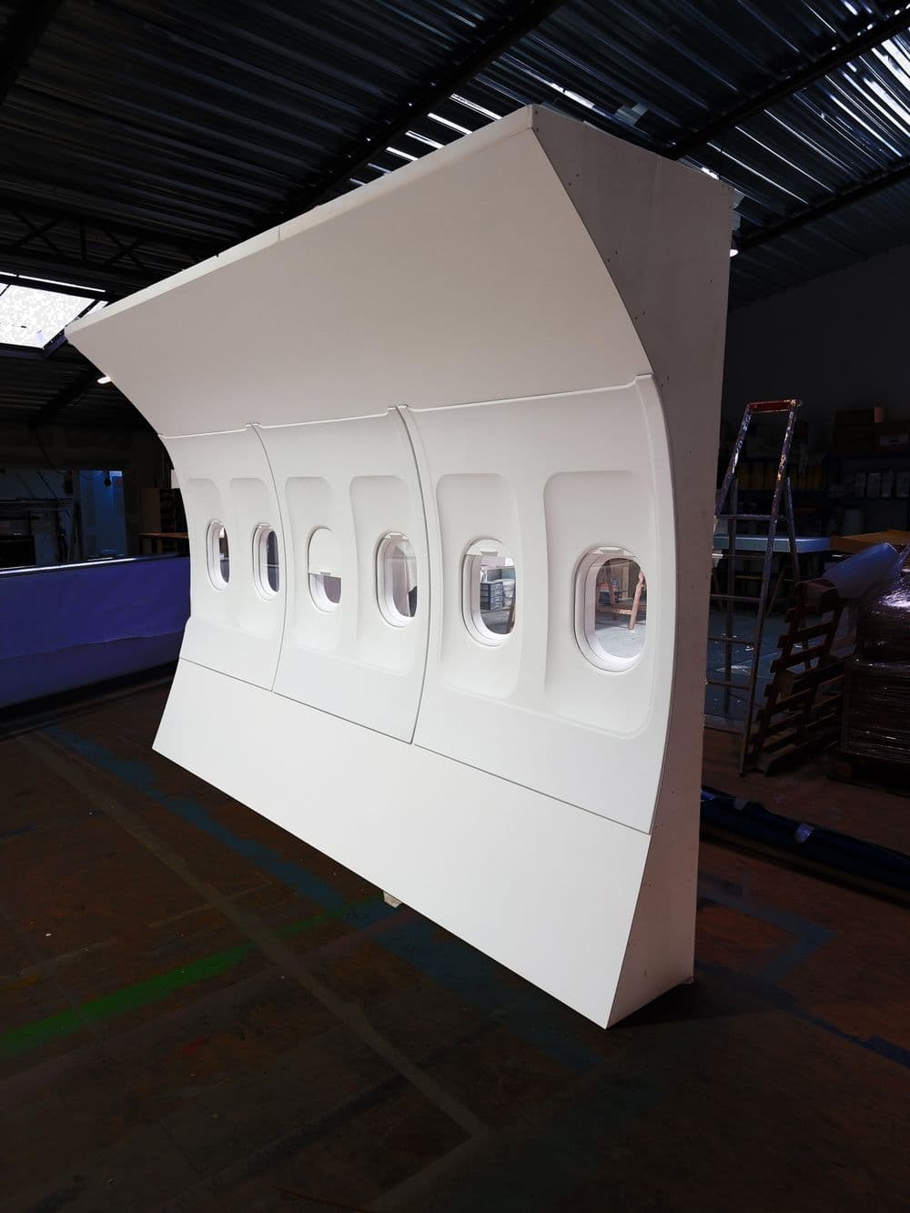 Dimensions : longueur - 320 cm largeur bas - 40 cm largeur haut - 74 cm hauteur - 220 cm Location d' intérieur d'avion de ligne