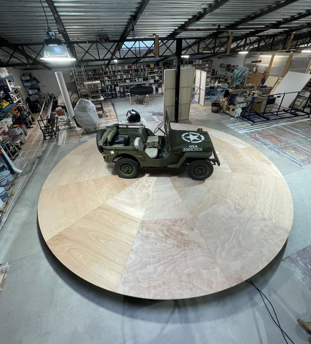 Plateau tournant 7m h 33cm, 0,9 à 2,5 t/mn , charge max 1500 kg , poids 900 kg / 380V / forfait tournage ou 3 jours